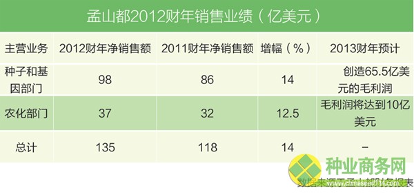 據(jù)了解,孟山都在中國的總業(yè)務(wù)量不足全球業(yè)務(wù)的1%,推算一下,2012財(cái)年在中國的凈銷售額約1.35億美元。