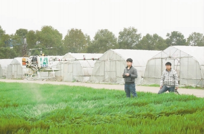 2月22日,安邦公司工作人員在麥田調(diào)試農(nóng)用噴藥飛機(jī),培訓(xùn)操作機(jī)手。本報(bào)記者 張尚武 攝