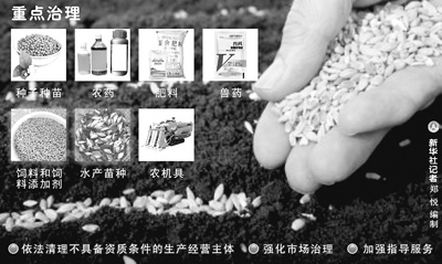 據(jù)介紹,今年的農(nóng)資打假將突出重點(diǎn)產(chǎn)品、重點(diǎn)環(huán)節(jié),以種子種苗、農(nóng)藥、肥料、獸藥、飼料和飼料添加劑、水產(chǎn)苗種、農(nóng)機(jī)具等七類農(nóng)資產(chǎn)品為重點(diǎn),集中治理存在的突出問題。(記者馮華)