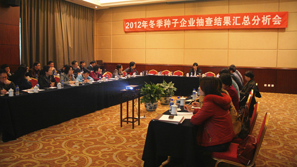 3月12日,全國農(nóng)技中心在北京召開了2012年冬季種子企業(yè)抽查結(jié)果匯總分析會(huì),來自承擔(dān)扦樣和檢測(cè)任務(wù)的省級(jí)種子質(zhì)量檢驗(yàn)機(jī)構(gòu)的30余人參加了會(huì)議。會(huì)議匯總了抽查樣品檢測(cè)結(jié)果,收集整理了不合格樣品的證據(jù)材料,交流了扦樣檢測(cè)工作,分析了當(dāng)前種子質(zhì)量總體情況和存在問題,并對(duì)監(jiān)督抽查工作規(guī)范進(jìn)行了研討。
