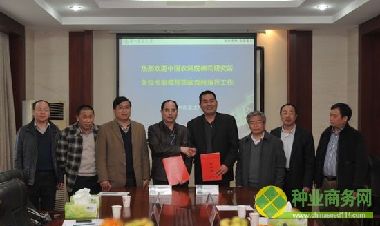 4月9日,中國(guó)農(nóng)業(yè)科學(xué)院棉花研究所與華中農(nóng)業(yè)大學(xué)在武漢召開(kāi)所校協(xié)同創(chuàng)新座談會(huì),主要就研究生培養(yǎng)、科研項(xiàng)目合作等方面進(jìn)行了研究和探討。棉花所喻樹(shù)迅院士、李付廣所長(zhǎng)及華中農(nóng)業(yè)大學(xué)校張獻(xiàn)龍副校長(zhǎng)等相關(guān)領(lǐng)導(dǎo)出席座談會(huì)。