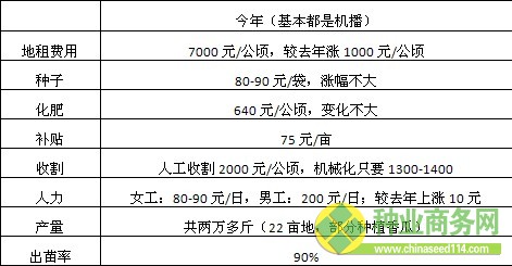 考察車??康牡谝徽臼枪枮I呼蘭區(qū)雙井鎮(zhèn)黃平村,下了車后,放眼望去,眼前的一大片黑土地被分成了兩邊,一邊是剛出土不久的玉米苗,另一邊是鋪上了地膜的香瓜地。碰巧,此時(shí)農(nóng)戶正在香瓜地里干活,我們一行人嘗試著上前詢問,農(nóng)戶倒是很熱心,一邊干活并一邊給我們介紹起情況來(lái)。據(jù)該農(nóng)戶介紹,今年受氣溫偏低影響,播種較往年有所推遲。往年4月20幾日就開始大面積播種,今年播種則集中在5月9-10日。盡管播種延遲了2周左右,但他認(rèn)為這對(duì)產(chǎn)量的影響并不大,因?yàn)檫M(jìn)入5月以后,氣溫回升快,且土層里水分充足,對(duì)玉米生長(zhǎng)較為有利。另外,該農(nóng)戶也將今年的種子、化肥、地租和人力成本等情況與去年做了一個(gè)對(duì)比,詳細(xì)情況如下表所示: