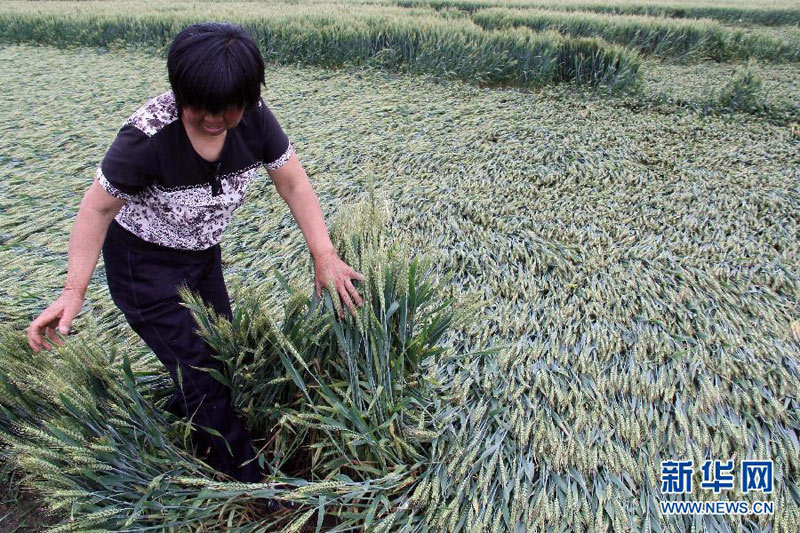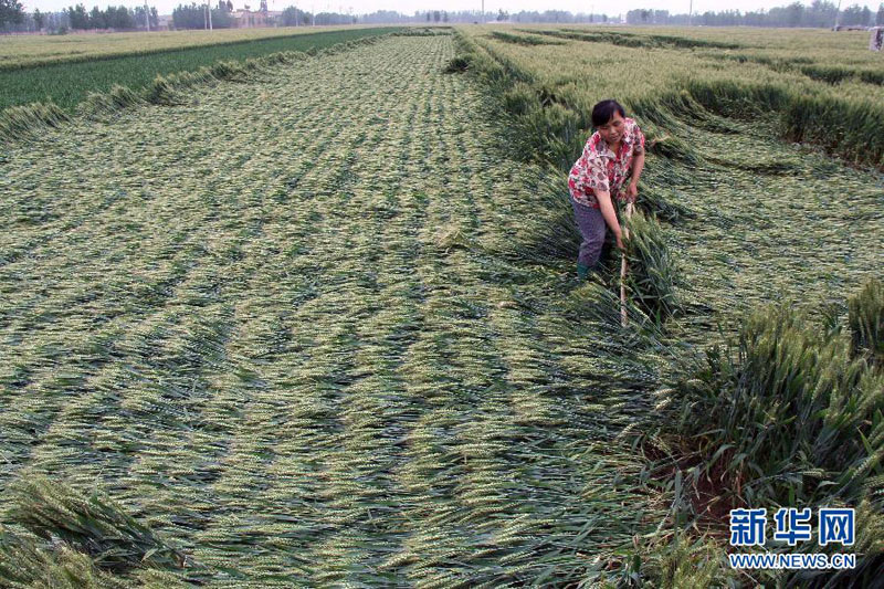 。近日連續(xù)的大風降雨,造成魯西小麥主產(chǎn)區(qū)山東聊城部分小麥發(fā)生倒伏。據(jù)聊城市農(nóng)業(yè)局最新統(tǒng)計,全市小麥倒伏面積達33.8萬畝。新華社發(fā)(張憲舉 攝)