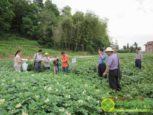 2013年5月下旬,四川省種子站組織省品種審定委員薯類專業(yè)委員會(huì)委員及區(qū)試抗病鑒定專家到北川、汶川、達(dá)州、通江、廣元等市(縣),對(duì)2013年四川省馬鈴薯品種試驗(yàn)進(jìn)行了田間考察??疾旖M專家充分肯定了各試點(diǎn)工作,一致認(rèn)為:今年我省馬鈴薯品種試驗(yàn)質(zhì)量明顯提高,總體完成情況較好。參試品種整體出苗情況正常,試驗(yàn)地土壤肥力均勻,管理水平中上,田間長(zhǎng)勢(shì)較好,參試品種純度田間總體表現(xiàn)較高。
