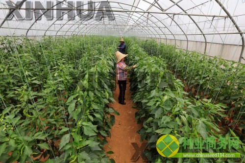 種子培育基地,工作人員在大棚里管護辣椒。 近年來,廣西桂林市臨桂縣抓住現(xiàn)代農(nóng)業(yè)發(fā)展機遇,利用先進