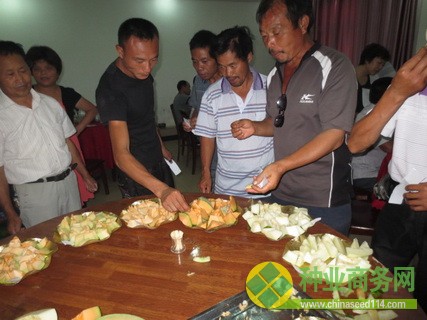 與會人員現(xiàn)場觀摩了縣瓜菜新品種展示示范基地的西甜瓜、番茄、彩椒和觀賞南瓜葫蘆等展示示范品種,并對6個甜瓜品種進(jìn)行品嘗評價。經(jīng)過現(xiàn)場考察評價,甜瓜品種:甬甜5號、小白龍、早生翠綠;番茄品種:石頭28、凱旋100、夏日陽光等獲得一致好評,同時觀賞南瓜葫蘆、彩椒系列也引起觀摩人員濃厚興趣。