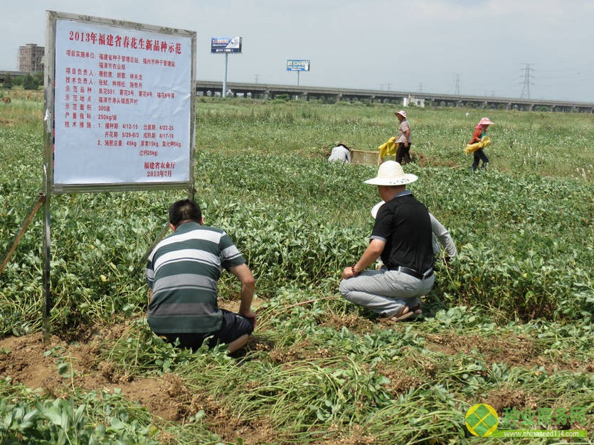8月12日,福清市農(nóng)業(yè)局組織省、市有關(guān)專家,對福清市種子管理站承擔(dān)的2013年福建省農(nóng)作物新品種示范推廣項目“春花生新品種示范與展示”進行現(xiàn)場驗收,專家組聽取了項目實施情況匯報,現(xiàn)場考察了福清市港頭鎮(zhèn)西蘆村的300畝的花生核心示范片,并對2個示范品種“泉花551、莆花3號”進行測產(chǎn)驗收。結(jié)果如下: