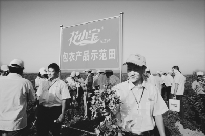 “同樣的管理,長(zhǎng)勢(shì)好的,播種時(shí)采用的是‘花小寶’牌包衣花生種;而長(zhǎng)勢(shì)差的沒(méi)有采用包衣技術(shù),所以?xún)蓚€(gè)地塊花生的長(zhǎng)勢(shì)形成鮮明對(duì)比。”在嘉祥縣狼山農(nóng)場(chǎng)花生良種繁育基地,圣豐種業(yè)的工作人員向參會(huì)經(jīng)銷(xiāo)商解釋說(shuō),“花小寶”包衣花生種,運(yùn)用先進(jìn)的脫殼包衣加工集成技術(shù),除有效殺蟲(chóng)、殺菌外,其包衣劑還含有能促進(jìn)花生生長(zhǎng)的各種微量元素;與此同時(shí),采用單粒精量播種和種肥同播技術(shù),花生前期不僅出苗整齊、苗壯,后期生長(zhǎng)也十分穩(wěn)健。