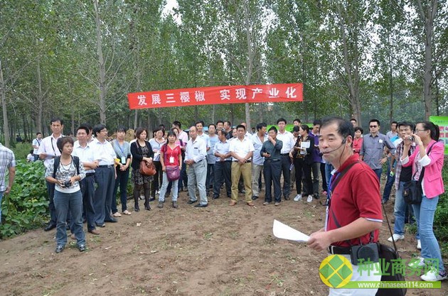 學(xué)術(shù)研討會(huì)后,與會(huì)代表現(xiàn)場(chǎng)觀摩了位于柘城縣老王集鄉(xiāng)朱河坡村120畝的三櫻椒新品種新技術(shù)核心示范基地,該基地共引進(jìn)示范朝天椒新品種33個(gè),設(shè)置了肥料、密度、定植方式試驗(yàn),示范集約化育苗、地膜覆蓋、節(jié)水滴灌、肥水一體化、黃板誘蚜等新技術(shù)。