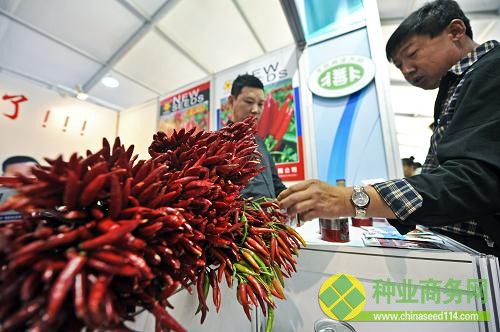 9月25日,消費者在第21屆北京種子大會上了解辣椒新品種。新華社發(fā)(王京生 攝)