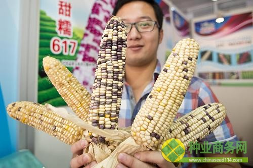 9月25日,參展商在第21屆北京種子大會上展示“彩甜糯617”玉米。當日,為期4天的第21屆北京種子大會在北京市豐臺區(qū)開幕。大會主要活動包括種業(yè)發(fā)展座談會、高品質(zhì)鮮食果蔬品嘗會、貿(mào)易洽談、新品種展示觀摩等,共有767家企業(yè)集中展示了番茄類、椒類、瓜類、葉菜類、根菜類等各類蔬菜品種450余個。新華社發(fā)(趙冰 攝)