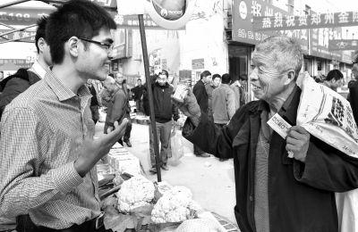 專程從鎮(zhèn)平縣侯集鎮(zhèn)姜營村趕來的農民張登三(右一)一下子購買了6000元的番茄、黃瓜、茄子種子,又被浙江神良種業(yè)有限公司生產的大花菜深深吸引?! ”緢笥浾邨钸h高攝
