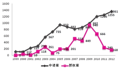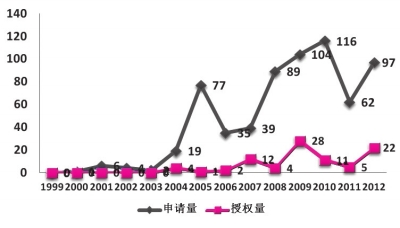 年度間農業(yè)植物新品種權申請量和授權量