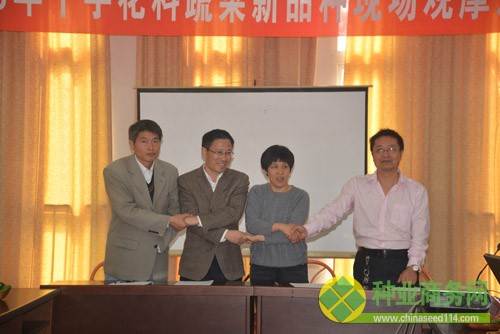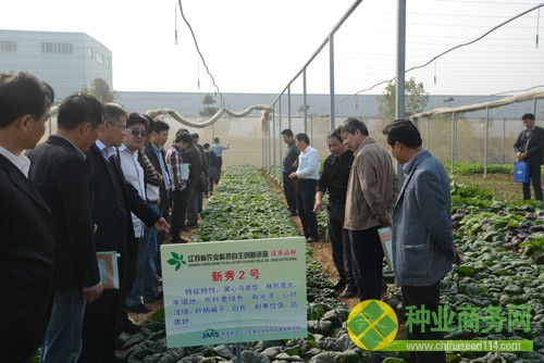 10月29日,省農(nóng)科院知識產(chǎn)權處與蔬菜所、江蔬種苗科技有限公司在六合試驗基地召開了十字花科蔬菜新品種現(xiàn)場觀摩及合作交流會。省農(nóng)科院副院長常有宏、省科技廳農(nóng)村處處長陳洪強、省種子管理站副站長鄒芳剛、省農(nóng)委科教處副處長杜永林、省農(nóng)業(yè)資源開發(fā)局綜合計劃處副處長劉學彬、南京市科委農(nóng)村處處長李奇等相關單位領導以及北京華耐等國內(nèi)二十多家知名蔬菜種業(yè)公司代表出席了會議。江蔬種苗、北京華耐、南通中江分別與省農(nóng)科院蔬菜所就甘藍、花菜新品種簽訂了合作開發(fā)協(xié)議。