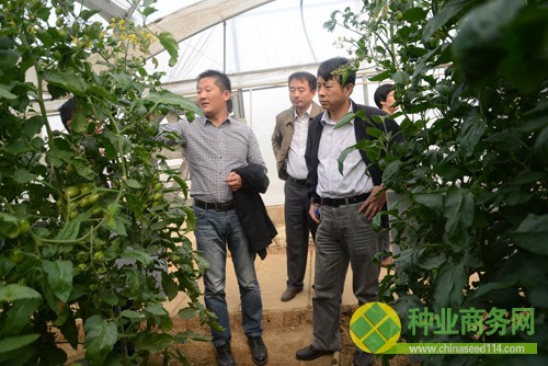 省科技廳農(nóng)村處處長陳洪強、省種子管理站副站長鄒芳剛考察西紅柿