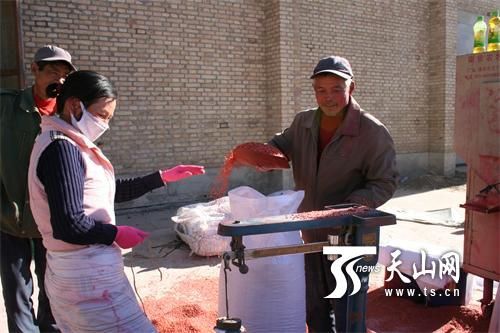 12月4日該團(tuán)農(nóng)業(yè)技術(shù)中心工作人員正在檢查春小麥包衣良種