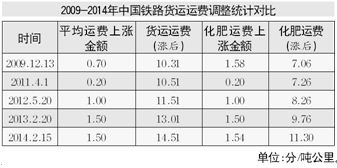 經(jīng)查詢發(fā)現(xiàn),化肥企業(yè)鐵路運(yùn)費(fèi)上漲1.54分/噸公里,即15.4元/噸千公里。此次漲價(jià)后,目前執(zhí)行的化肥運(yùn)價(jià)由每噸公里9.76分(0.0976元)調(diào)整為11.30分(0.1130元),化肥運(yùn)費(fèi)上調(diào)幅度15.78%,超普通貨運(yùn)上調(diào)幅度。相對(duì)普通貨運(yùn),化肥仍享有鐵路運(yùn)輸優(yōu)惠,但優(yōu)惠幅度繼續(xù)縮窄。