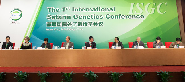 農(nóng)業(yè)部副部長、中國農(nóng)業(yè)科學(xué)院院長李家洋在致辭時說,遺傳學(xué)的不斷發(fā)展,為解決人類健康、促進生物產(chǎn)業(yè)、保障農(nóng)業(yè)生產(chǎn)和糧食安全提供了重要的科學(xué)保障。隨著社會進步和人類需求的不斷提升,需要不斷推動遺傳學(xué)的深入發(fā)展,而模式生物在引領(lǐng)重要的科學(xué)發(fā)現(xiàn)和先進研究手段的不斷進步方面扮演著十分重要的角色。谷子與玉米、高粱、甘蔗、珍珠粟、糜子、柳枝稷等禾谷類糧食和能源作物近緣,通過以谷子為模式開展功能基因研究,不僅能為解決多年來難以解析的抗旱和C4光合作用的遺傳分子機理提供嶄新的機遇,還能為研究作物的馴化和改良、抗旱性的遺傳機制、植物系統(tǒng)進化和應(yīng)用價值基因的分離和克隆提供獨特的視角和思路。
