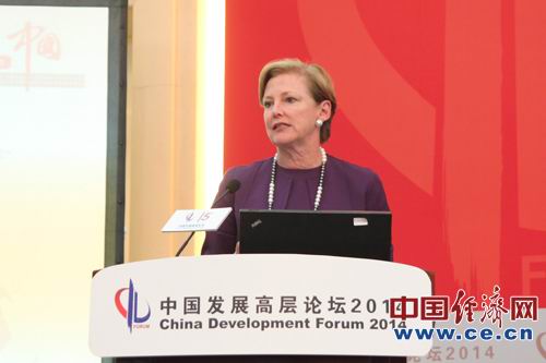 由國務(wù)院發(fā)展研究中心主辦、中國發(fā)展研究基金會承辦的主題為"全面深化改革的中國"的中國發(fā)展高層論壇2014年會于2014年3月22-24日在北京釣魚臺國賓館舉行。中國經(jīng)濟(jì)網(wǎng)全程直播報道。圖為杜邦公司董事長、首席執(zhí)行官柯愛倫。中國經(jīng)濟(jì)網(wǎng)劉瀟瀟 攝影