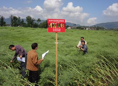 為篩選適宜達(dá)州種植的油菜優(yōu)新品種,4月22日,達(dá)州市農(nóng)業(yè)局組織農(nóng)技、植保、種子、農(nóng)科所等有關(guān)專家對市種子站牽頭實施的油菜新品種試驗示范開展了田間現(xiàn)場考察。專家組重點考察了11個(含對照)參試油菜新品種農(nóng)藝性狀、成熟一致性、抗倒性、抗病性.此次田間考察發(fā)現(xiàn)一些表現(xiàn)較好的品種,產(chǎn)量待收獲時進(jìn)行實測。 (達(dá)州市種子管理站 供稿)