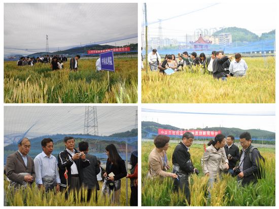 作科所小麥基因資源研究組賈繼增研究員帶領(lǐng)與會代表實地考察了小麥赤霉病抗性鑒定基地,展示了該研究組近年來從國內(nèi)外小麥種質(zhì)資源中篩選出的一批不同于蘇麥3號的新抗源,以及創(chuàng)新的一些綜合農(nóng)藝性狀優(yōu)良的抗病新種質(zhì),同時觀摩了國內(nèi)其他育種單位小麥新品系的赤霉病抗性鑒定圃。與會人員對這些抗病種質(zhì)資源很感興趣,希望今后加強(qiáng)合作,積極推動小麥抗赤育種工作。