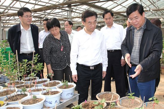5月9日,農(nóng)業(yè)部副部長張?zhí)伊衷谥袊r(nóng)業(yè)科學院黨組書記陳萌山、農(nóng)業(yè)部科教司副司長劉艷、河南省農(nóng)業(yè)廳副廳長薛豫宛、安陽市委副書記李文斌等領導的陪同下赴中國農(nóng)科院棉花所調(diào)研。