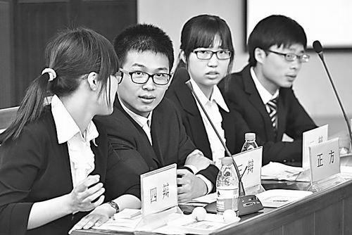 立論陳詞,雙方代表都以學(xué)術(shù)報(bào)告的形式,輔之以演示幻燈片擺論據(jù)、講觀點(diǎn)。正反雙方的表現(xiàn)都可謂四平八穩(wěn),畢竟,這是辯論賽中最沒有變數(shù)的環(huán)節(jié)、全然看雙方搜集資料組織論據(jù)的準(zhǔn)備如何?,F(xiàn)場觀眾雖然聽得聚精會(huì)神,但大多在心里暗暗期待接下來的攻辯和自由辯論。