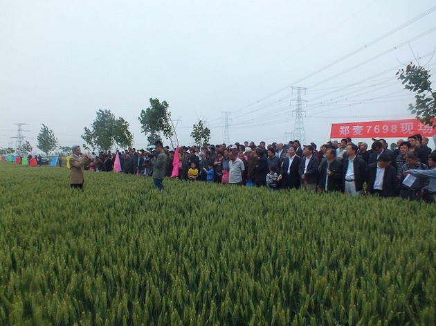 5月11日,我院在駐馬店舉行農(nóng)業(yè)部公益性行業(yè)科研專項“糧食作物抗災群體優(yōu)化與定向減災技術研究與示范”暨小麥新品種鄭麥7698現(xiàn)場觀摩會。院黨委書記郭鵬亮、副院長房衛(wèi)平,省農(nóng)業(yè)廳副廳長薛豫宛出席會議,我院有關單位,省農(nóng)業(yè)廳科教處、省科技廳農(nóng)村處,駐馬店市政府辦,市農(nóng)科院以及西平縣委縣政府等單位的主要負責同志和有關專家,來自山東、河北、安徽、江蘇等6個省份的本科研專項專家代表,河南駐研種業(yè)有限公司和駐馬店地區(qū)40余家種子經(jīng)銷商企業(yè)代表等共計380余人參加了現(xiàn)場觀摩會。會議由駐馬店市農(nóng)科院院長楊清嶺主持。