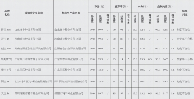 抽查結(jié)果是500個(gè)玉米樣品中,493個(gè)樣品合格,7個(gè)不合格(詳細(xì)名錄見(jiàn)表格)。抽查樣品全部合格的企業(yè)381家,企業(yè)合格率98.2%。從檢測(cè)指標(biāo)看,所有樣品凈度和水分全部合格;品種純度合格樣品495個(gè),合格率99.0%;發(fā)芽率合格樣品498個(gè),合格率99.6%。