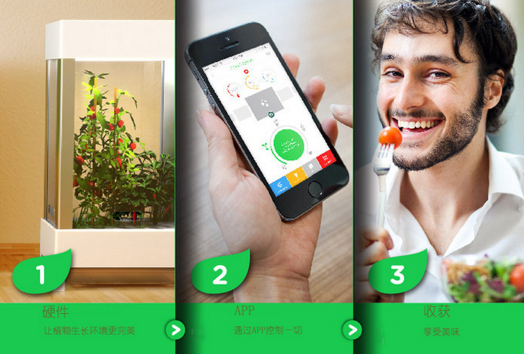 用戶(hù)只需要種下種子,然后告訴手機(jī)應(yīng)用程序種下的是什么作物,系統(tǒng)就會(huì)為調(diào)節(jié)成適合這種作物生長(zhǎng)的環(huán)境。用戶(hù)可以通過(guò)手機(jī)程序追蹤作物的生長(zhǎng)態(tài)勢(shì),必要的話可以讓系統(tǒng)進(jìn)行調(diào)節(jié)。
