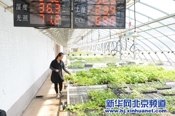 圖為溫室大棚內(nèi),一塊led詳細(xì)顯示著當(dāng)前大棚內(nèi)各項(xiàng)指標(biāo)的數(shù)值。(世界種子大會(huì)豐臺(tái)籌備辦供圖)