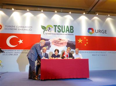 2014年6月17日,中國(guó)種子協(xié)會(huì)與土耳其種子工業(yè)家和企業(yè)家協(xié)會(huì)共同舉辦了中土種子企業(yè)洽談會(huì)。來(lái)自我會(huì)的15家種子企業(yè)與土耳其種子工業(yè)家和企業(yè)家協(xié)會(huì)15家企業(yè)進(jìn)行了商務(wù)洽談。我會(huì)副會(huì)長(zhǎng)馬淑萍、土耳其種子工業(yè)家和企業(yè)家協(xié)會(huì)主席Mr.Yildiray Gencer,土耳其駐華大使館經(jīng)濟(jì)參贊Gormez博士分別致辭,預(yù)祝兩國(guó)種子協(xié)會(huì)的首次合作成功。