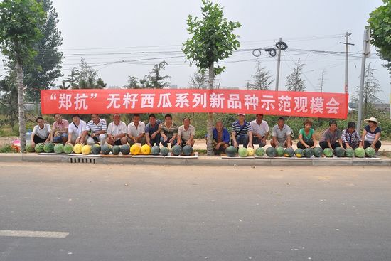 近日,由國家西甜瓜產(chǎn)業(yè)技術體系多倍體育種崗位、中國農(nóng)業(yè)科學院鄭州果樹研究所多倍體西瓜育種課題組舉辦的“鄭抗”系列無籽西瓜新品種示范觀摩會在中牟縣韓寺鎮(zhèn)大洪村舉行。來自鄭州周邊的各級經(jīng)銷商、西瓜種植大戶共計80余人參加了觀摩會。