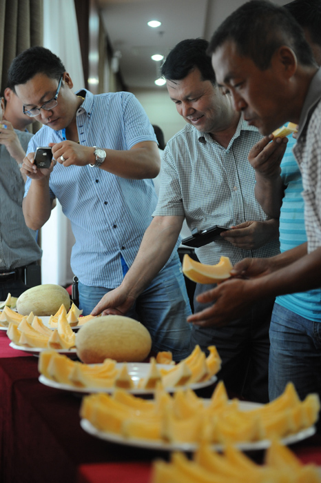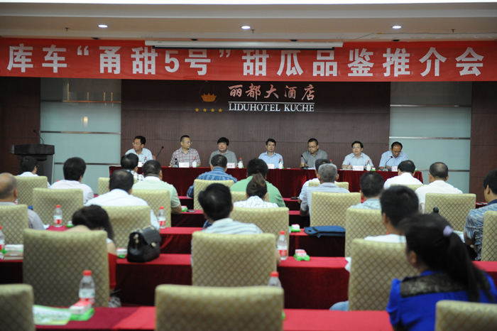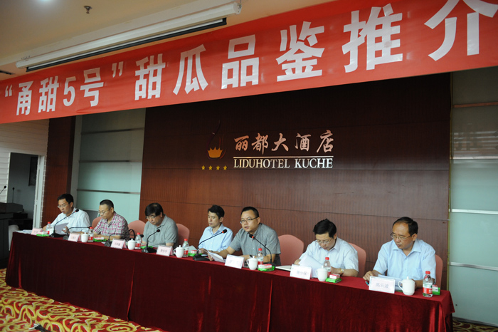7月16日上午,由庫車縣委縣政府主辦、庫車縣農(nóng)業(yè)局承辦的2014庫車“甬甜5號(hào)”甜瓜品鑒推介會(huì)在庫車縣麗都酒店舉行。會(huì)上,以國家西甜瓜產(chǎn)業(yè)體系露地甜瓜栽培崗位專家、新疆農(nóng)科院哈密瓜研究中心主任馮炯鑫為代表的專家組公布鑒定意見:“甬甜5號(hào)”對于豐富新疆水果市場供應(yīng)具有重要意義,建議庫車縣將其作為精品水果進(jìn)行重點(diǎn)推廣。