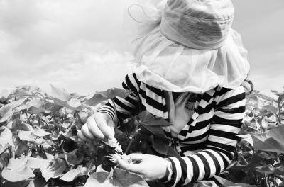 圖為7月16日,第五師農科所技術人員在八十九團實驗基地對棉花進行人工授粉雜交育種。 劉世全趙全輝攝