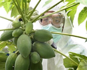 科研人員在研究轉(zhuǎn)基因木瓜。