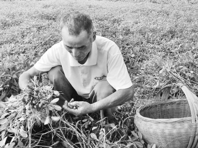 河南省固始縣徐集鄉(xiāng)白羊村1800多畝土地有一半是沙質(zhì)土壤,十分適宜花生種植。今年春,鄉(xiāng)里引進(jìn)“花育16號(hào)”和“8130”等花生良種播種,長(zhǎng)勢(shì)十分喜人,目前已到了收獲時(shí)節(jié),畝均可收獲400公斤左右,效益在3000元以上。圖為8月19日,農(nóng)民霍元連在自家農(nóng)田里扒花生。 丁昌銘攝