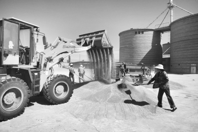 圖為8月25日,該團農(nóng)業(yè)技術(shù)人員正在精選“新春六號”小麥優(yōu)良品種,當日精選儲備來年麥種1646噸。 杜炳勛閆志江攝