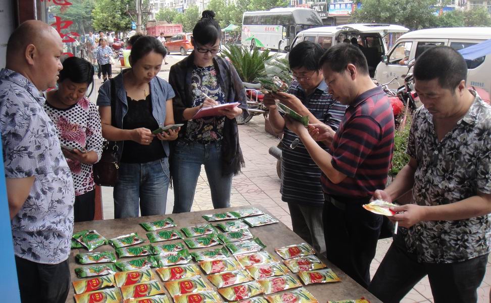 根據(jù)上級要求,南充市出臺了2014年秋冬種子市場監(jiān)管工作文件。近日,按照文件要求,主要開展以下工作:一是加強抽檢力度。對轄區(qū)內小麥、油菜種子經營門店進行全覆蓋檢查,抽取90%以上的市場經營品種;銷售的本季節(jié)蔬菜種子抽檢50%以上;政府采購的品種100%抽檢,檢測種子凈度、水分和發(fā)芽率等質量指標的同時,將進行田間種植鑒定。同時,嚴厲查處套牌侵權、未審先推、銷售散裝或白包種子、游商小販非法銷售等違法行為。二是加強技術指導,確保供種質量。組織種子、農技、植保等相關部門加強技術指導,制定優(yōu)化品種布局方案,指導農戶選擇適宜品種、適期播種、適量播種、擴大藥劑拌種比例。