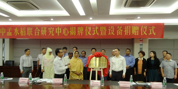 在科技部的支持下,國家科技援助項目“中國-孟加拉國水稻聯(lián)合研究中心”于2014年9月2日在四川農業(yè)大學成都校區(qū)舉行了揭牌儀式暨設備捐贈儀式。孟加拉國農業(yè)部副秘書Shirina Khatun女士、四川省科技廳副廳長羅治平、四川農業(yè)大學副校長王曙光等出席儀式。