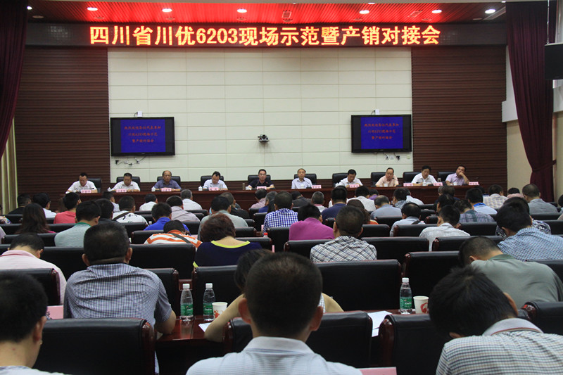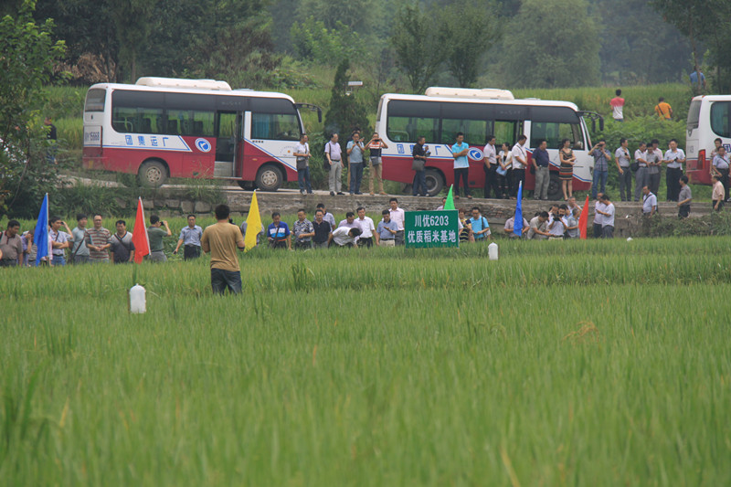 為加快雜交水稻突破性新品種川優(yōu)6203的轉(zhuǎn)化推廣步伐,充分發(fā)揮優(yōu)良品種在農(nóng)業(yè)增產(chǎn)增收中的作用,9月5日,省農(nóng)業(yè)廳、農(nóng)科院在巴中市南江縣召開了川優(yōu)6203現(xiàn)場示范暨產(chǎn)銷對接會。省農(nóng)業(yè)廳牟錦毅副廳長、省農(nóng)科院李躍建院長、任光俊、劉建軍副院長,以及2015年川優(yōu)6203推廣項(xiàng)目縣所在市種子管理站站長、部分推廣大縣(市、區(qū))種子站站長和農(nóng)技站站長、川優(yōu)6203種子生產(chǎn)企業(yè)負(fù)責(zé)人、米業(yè)加工企業(yè)負(fù)責(zé)人等160余人出席會議。四川電視臺、四川農(nóng)村日報(bào)、巴中電話臺、南江電視臺等新聞媒體進(jìn)行了現(xiàn)場采訪報(bào)道。