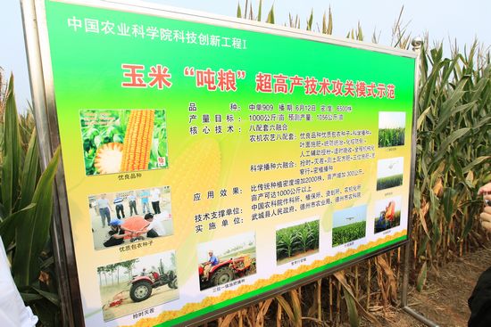 在得知“玉米高產(chǎn)高效生產(chǎn)模式”得到當(dāng)?shù)胤N植戶的認(rèn)可后,陳萌山說,在德州農(nóng)業(yè)自然條件不是很好的前提下,實現(xiàn)畝產(chǎn)超過1000公斤,增收800元,確屬不易,為探索再高產(chǎn)提供了技術(shù)支撐。德州武城玉米增產(chǎn)增效示范帶給我們?nèi)髥⑹?,第一,充分顯示了技術(shù)的集成作用。持續(xù)提高單產(chǎn)、增加總產(chǎn),靠單一品種、單項技術(shù),是難以做到的。德州玉米示范點集成了院屬作科所、植保所、資劃所、農(nóng)機(jī)化所4個研究所的技術(shù),還結(jié)合了地方現(xiàn)有的技術(shù),實現(xiàn)了八項技術(shù)的配套和六項技術(shù)的融合;第二,充分顯示了技術(shù)的集約作用。持續(xù)提高單產(chǎn)、增加總產(chǎn),必須要做到持續(xù)增加效益、降低成本,做到增產(chǎn)增效并舉。德州玉米示范點通過技術(shù)服務(wù)社會化、適度規(guī)模經(jīng)營、全程機(jī)械化生產(chǎn)等,實現(xiàn)了人力節(jié)省,每畝減少5個工;第三,充分顯示了強(qiáng)大的組織優(yōu)勢和制度優(yōu)勢。持續(xù)提高單產(chǎn)、增加總產(chǎn),必須要做到技術(shù)、政策和行政措施相配套。根據(jù)不同年份的氣候、災(zāi)害情況,制定針對性很強(qiáng)的技術(shù)方案和措施,并及時推廣普及抗災(zāi)減災(zāi)技術(shù),把技術(shù)、政策、行政措施融合起來,把技術(shù)的作用最大化。