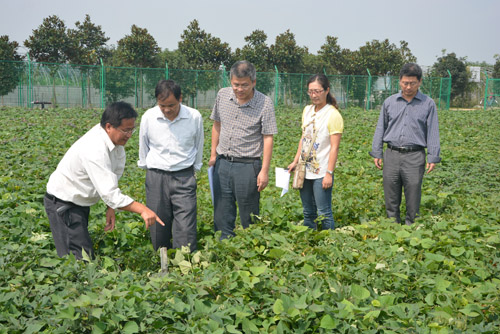 為及時了解2014年度省甘薯新品種鑒定試驗的執(zhí)行情況和參試品種表現(xiàn),9月24日~26日,省種子管理站組織有關(guān)專家對全省8家承試單位的試驗執(zhí)行情況進行了檢查,并對參試品種品種的田間表現(xiàn)進行了考察。總體看來,今年大多數(shù)試點能按照試驗方案要求組織實施,田間管理措施及時、到位,甘薯整體長勢長相較好,品種特性表現(xiàn)清楚,試驗質(zhì)量較好。但受不利氣候影響,部分試點地上部生長過旺,地下部生長量不足。