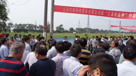 9月28日,省種子管理站在泰州市紅旗良種場舉行了2014年“江蘇好品種”中稻現(xiàn)場觀摩評比活動,南京、南通、淮安、鹽城、揚州、鎮(zhèn)江及泰州等七市的市、縣(市、區(qū))種子管理站站長,部分省水稻品種審定專業(yè)委員會委員或?qū)<?,部分種子企業(yè),有關(guān)種田大戶、農(nóng)民代表,《新華日報》、省廣播電臺、《江蘇農(nóng)業(yè)科技報》等新聞媒體共150多人參加了活動。省種子管理站鄒芳剛站長參加了觀摩考察并講話。