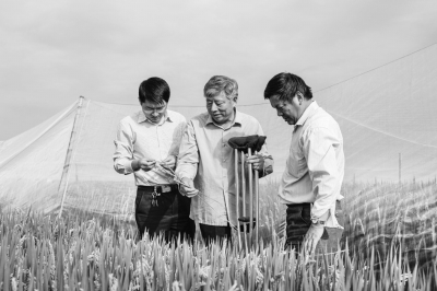為順應(yīng)百姓對食品安全及美好生活的新期待,九屆、十屆全國人大代表姜德明今年示范種植的百畝綠色“蚊帳大米”,全程覆蓋防蟲網(wǎng)、不用防蟲農(nóng)藥;施用有機肥、農(nóng)家肥(長苕子綠肥);在抽穗灌漿期遇上連續(xù)低溫、多雨、寡照的不利氣候情況下,畝產(chǎn)預(yù)計仍逾650公斤。圖為姜德明(中)與技術(shù)人員在射陽縣盤灣鎮(zhèn)綠色“蚊帳大米”基地察看水稻長勢。 本報記者崔麗攝