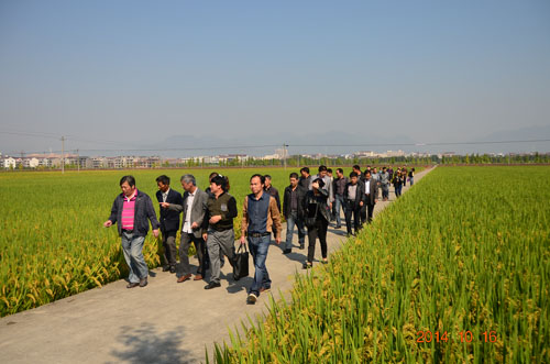 為了總結(jié)2014年度晚稻新品種試驗(yàn)、示范、推廣工作經(jīng)驗(yàn),進(jìn)一步優(yōu)化我市晚稻品種結(jié)構(gòu),加快晚稻新品種的推廣速度,10月16日,東陽市種子管理站組織農(nóng)技推廣中心、鄉(xiāng)鎮(zhèn)(街道)農(nóng)技站、種子企業(yè)等單位人員及種糧大戶代表現(xiàn)場(chǎng)考察了位于巍山鎮(zhèn)、六石街道的單季晚稻示范畈和城東街道的連作晚稻示范畈。