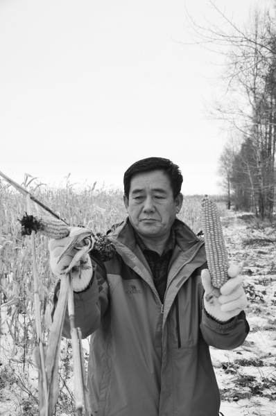 上圖:黑龍江省嘉蔭農(nóng)場20隊大戶孫新安對比“白籽”與正規(guī)種子種出的玉米。