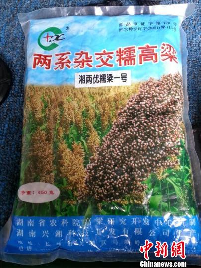 汪長松提供的種子包裝袋上寫著,兩系雜交糯高粱“湘兩優(yōu)糯粱一號”由湖南省農(nóng)科院高粱研究開發(fā)中心研制。