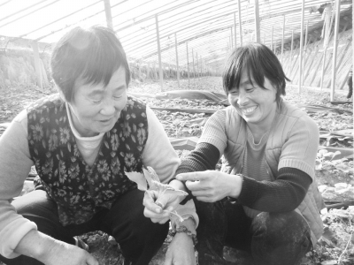 圖為僑潤(rùn)街道益陽(yáng)合作社技術(shù)員劉英向工人講解草莓管理技術(shù)。