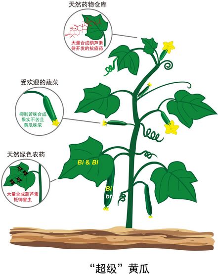 黃瓜苦味物質(zhì)葫蘆素具有很好的藥用價值。最早在《本草綱目》中就記載富含葫蘆素的甜瓜瓜蒂具有催吐及消炎的功效。現(xiàn)代醫(yī)學(xué)研究還發(fā)現(xiàn)葫蘆素能夠抑制癌細胞的生長,可與其他抗癌藥物一塊用于癌癥治療。黃三文表示,正在與有關(guān)科研單位開展合作研究,葫蘆素的合成和調(diào)控機制一旦破解,或為將來開發(fā)合成治療癌癥的藥物打下堅實的基礎(chǔ)。